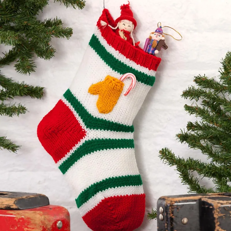 Though regular-sized stockings make for a lovely addition to your fireplace, how about knitting some miniature stockings as ornaments for the tree? They also make for adorable gift toppers and garlands for home decor.